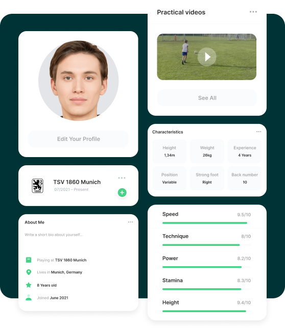 Share videos of your skills. Be noticed by scouts. Join your academy. Connect with your team and grow with us.